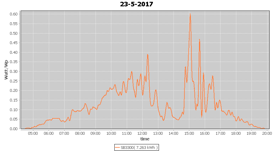 | 23-5-2017 | kWh | W/Wp | 7.263 | 3960 | 1.8 | 3.359 | £ 0.00 | 2.9 | |