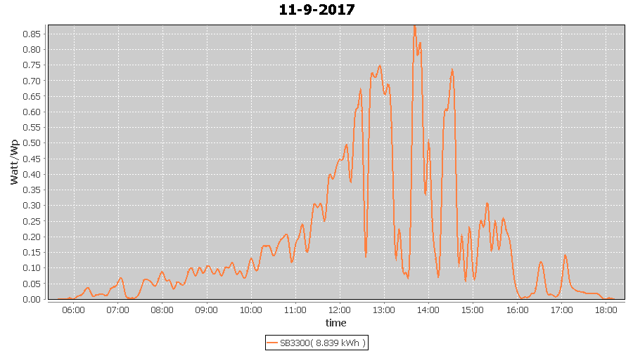 | 11-9-2017 | kWh | W/Wp | 8.839 | 3960 | 2.2 | 4.088 | £ 5.89 | 5.1 | |
