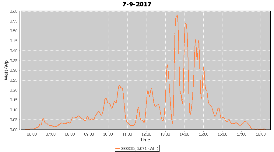 | 7-9-2017 | kWh | W/Wp | 5.071 | 3960 | 1.3 | 2.345 | £ 3.38 | 2.9 | |