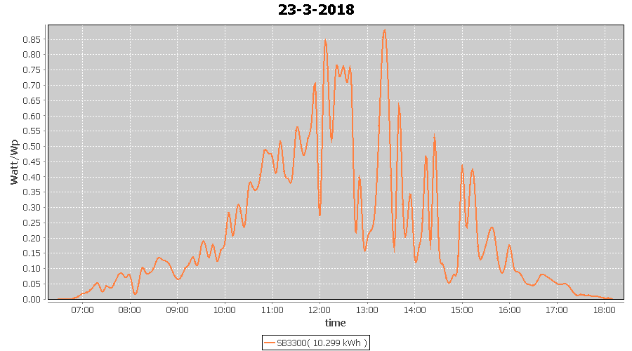 | 21-3-2018 | kWh | W/Wp | 12.797 | 3960 | 3.2 | 5.919 | £ 8.53 | 8.9 | |
