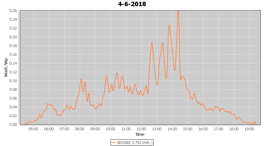 | 4-6-2018 | kWh | W/Wp | 3.752 | 3960 | 0.9 | 1.735 | £ 0.00 | 1.2 | |
