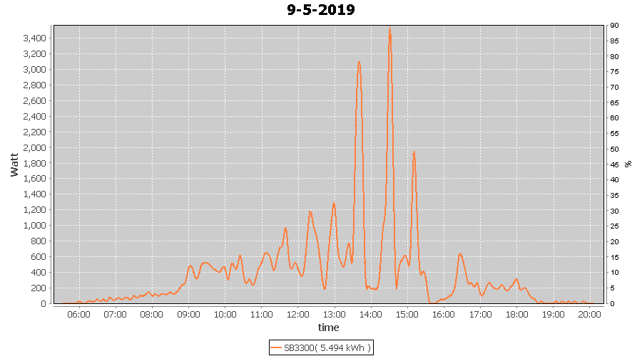 | 9-5-2019 | kWh | W/Wp | 5.494 | 3960 | 1.4 | 2.541 | £ 0.00 | 2.2 | |