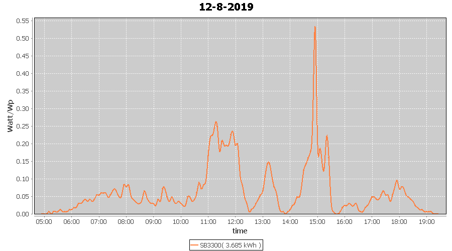 | 12-8-2019 | kWh | W/Wp | 3.685 | 3960 | 0.9 | 1.704 | £ 0.00 | 1.4 | |