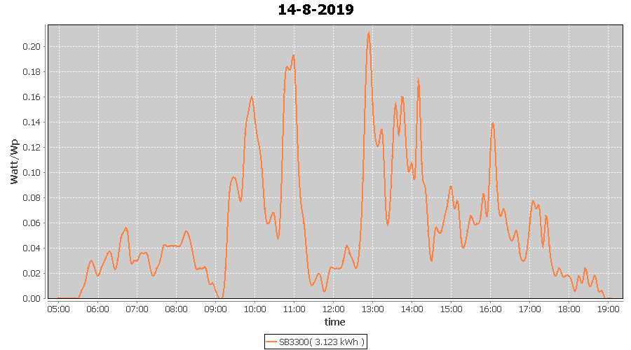 | 14-8-2019 | kWh | W/Wp | 3.123 | 3960 | 0.8 | 1.444 | £ 0.00 | 1.2 | |