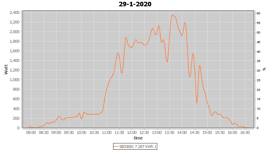 | 29-1-2020 | kWh | W/Wp | 7.287 | 3960 | 1.8 | 3.370 | £ 5.31 | 10.3 | |