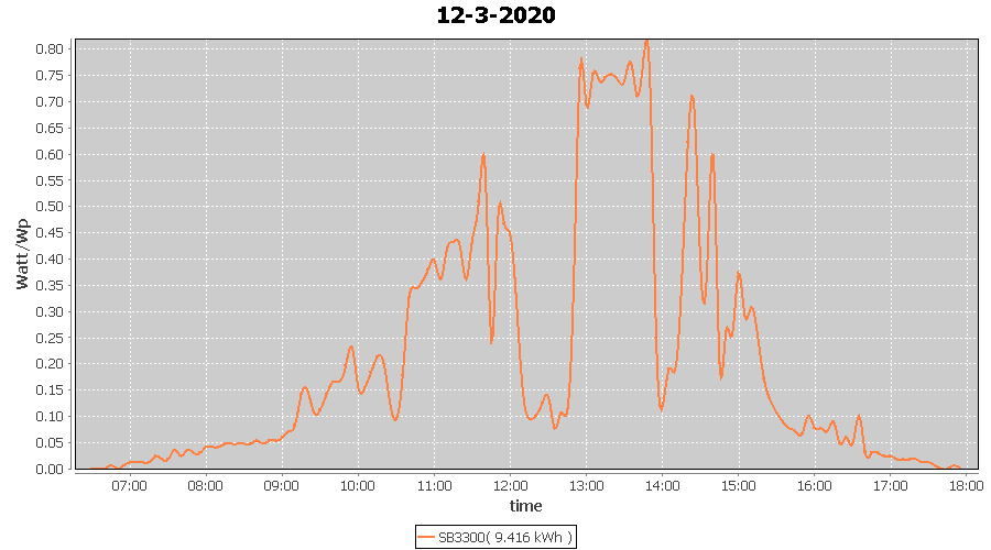 | 12-3-2020 | kWh | W/Wp | 9.416 | 3960 | 2.4 | 4.355 | £ 6.87 | 3.8 | |