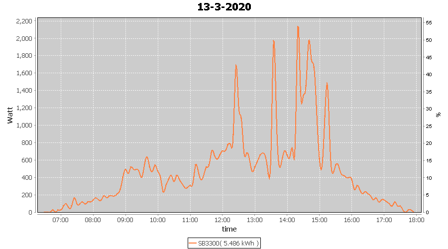 | 13-3-2020 | kWh | W/Wp | 5.486 | 3960 | 1.4 | 2.537 | £ 4.00 | 2.2 | |
