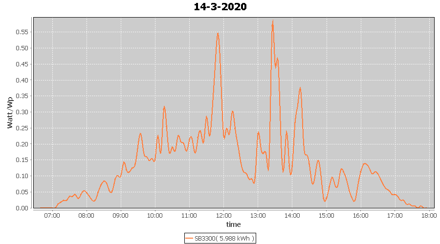 | 14-3-2020 | kWh | W/Wp | 5.988 | 3960 | 1.5 | 2.769 | £ 4.37 | 2.4 | |
