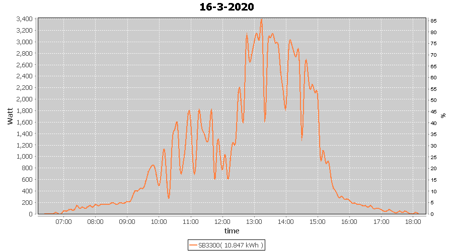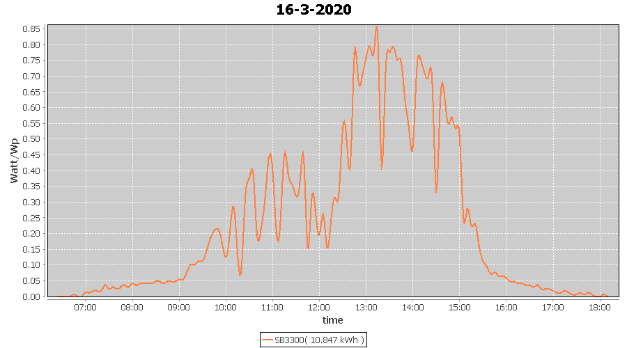 | 16-3-2020 | kWh | W/Wp | 10.847 | 3960 | 2.7 | 5.017 | £ 7.91 | 4.4 | |
