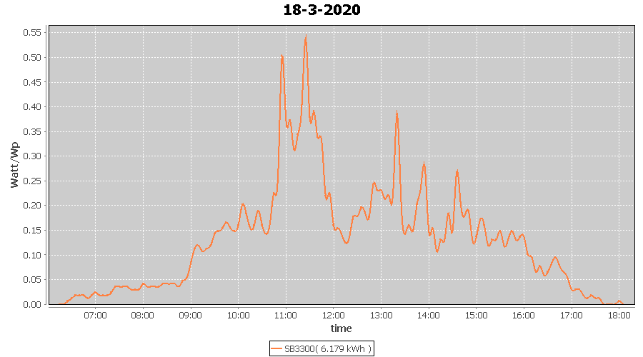 | 18-3-2020 | kWh | W/Wp | 6.179 | 3960 | 1.6 | 2.858 | £ 4.51 | 2.5 | |