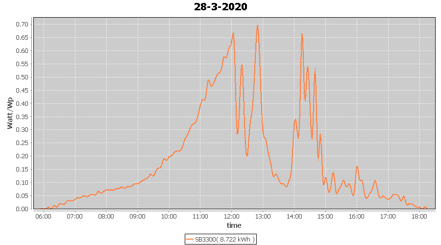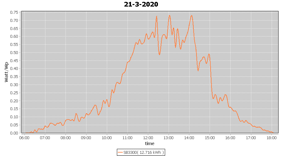 | 21-3-2020 | kWh | W/Wp | 12.716 | 3960 | 3.2 | 5.881 | £ 9.27 | 5.2 | |