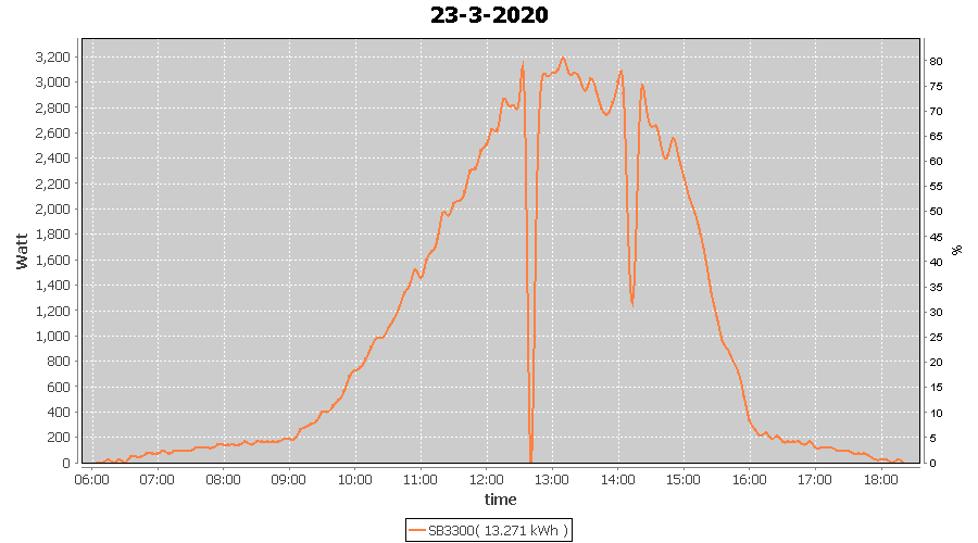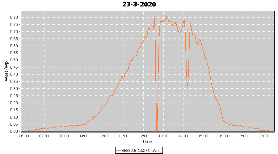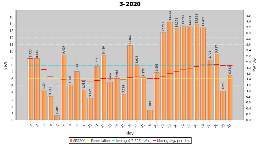 | 23-3-2020 | kWh | W/Wp | 13.271 | 3960 | 3.4 | 6.138 | £ 9.68 | 5.4 | |