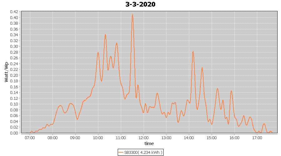 | 3-3-2020 | kWh | W/Wp | 4.234 | 3960 | 1.1 | 1.958 | £ 3.09 | 1.7 | |