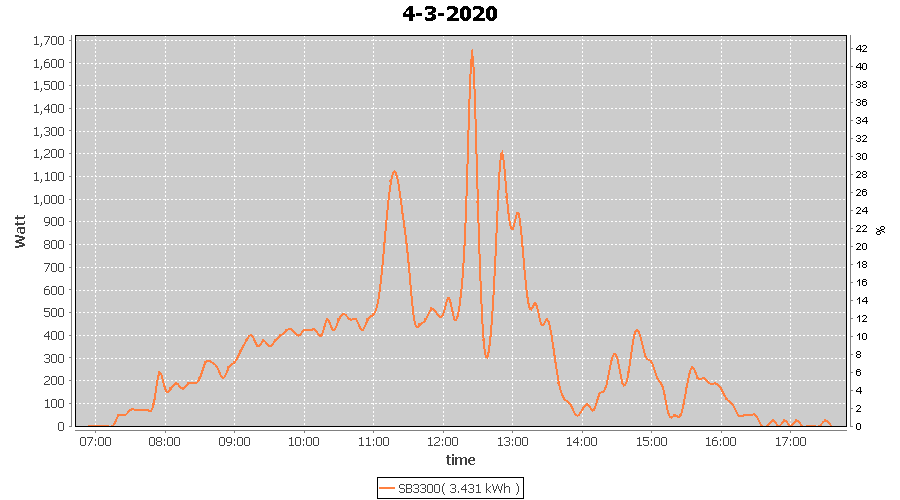 | 4-3-2020 | kWh | W/Wp | 3.431 | 3960 | 0.9 | 1.587 | £ 2.50 | 1.4 | |