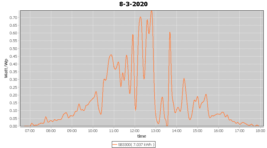 | 8-3-2020 | kWh | W/Wp | 7.037 | 3960 | 1.8 | 3.255 | £ 5.13 | 2.9 | |