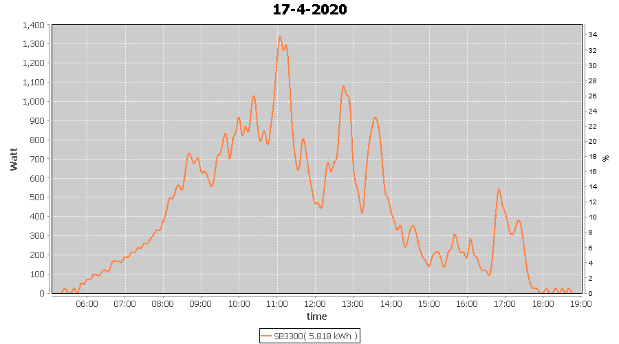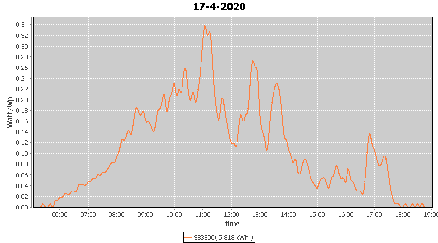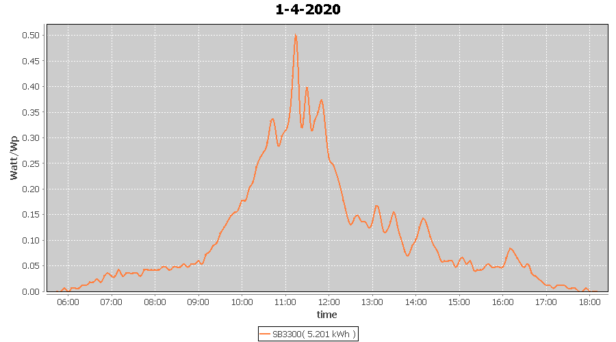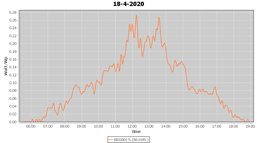 | 18-4-2020 | kWh | W/Wp | 5.156 | 3960 | 1.3 | 2.385 | £ 3.76 | 1.6 | |
