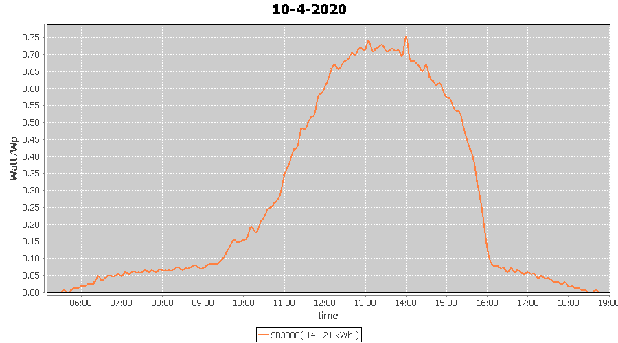 | 10-4-2020 | kWh | W/Wp | 14.121 | 3960 | 3.6 | 6.531 | £ 10.30 | 4.4 | |