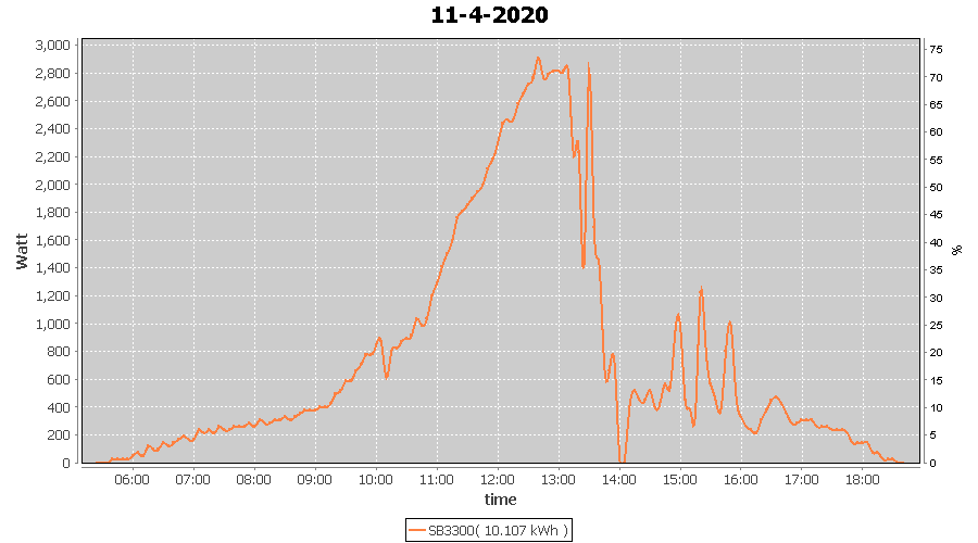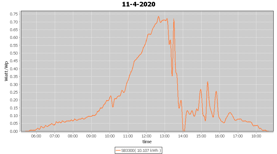 | 11-4-2020 | kWh | W/Wp | 10.107 | 3960 | 2.6 | 4.674 | £ 7.37 | 3.1 | |