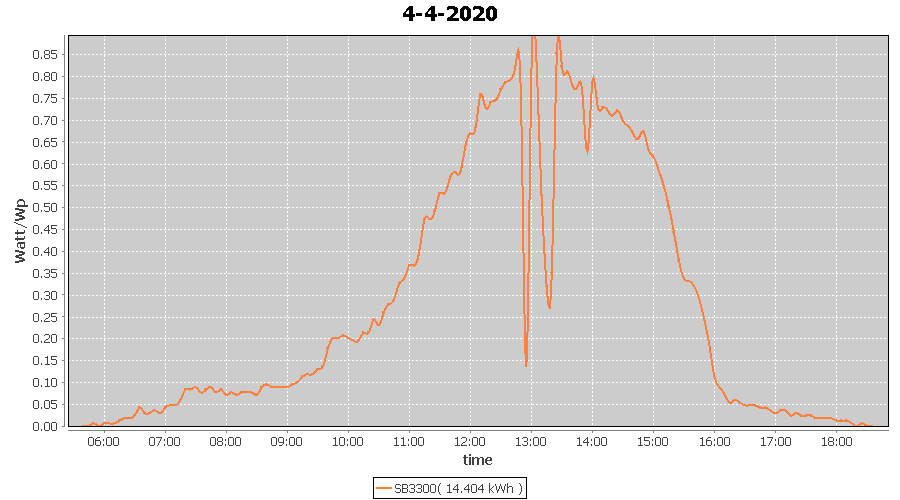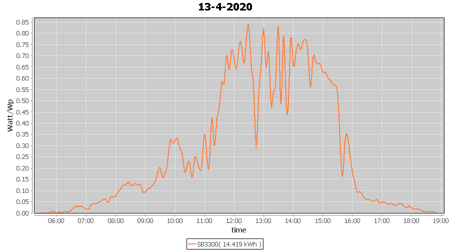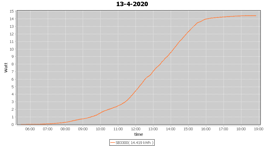 | 13-4-2020 | kWh | W/Wp | 14.419 | 3960 | 3.6 | 6.669 | £ 10.52 | 4.5 | |
