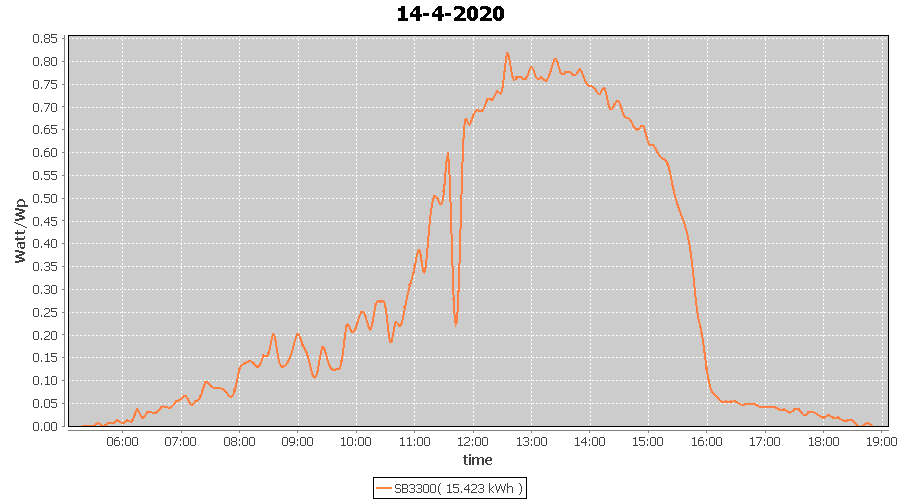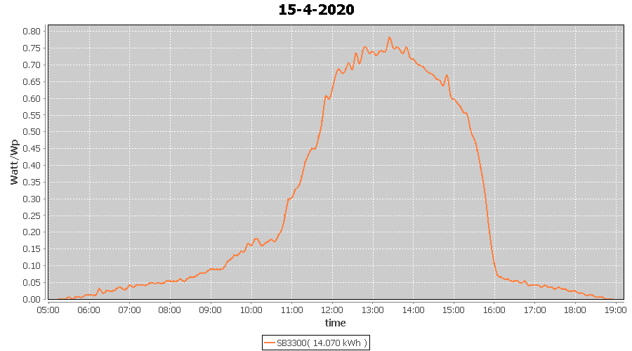 | 15-4-2020 | kWh | W/Wp | 14.070 | 3960 | 3.6 | 6.507 | £ 10.26 | 4.4 | |