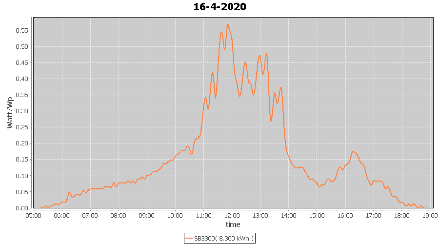 | 16-4-2020 | kWh | W/Wp | 8.300 | 3960 | 2.1 | 3.839 | £ 6.05 | 2.6 | |