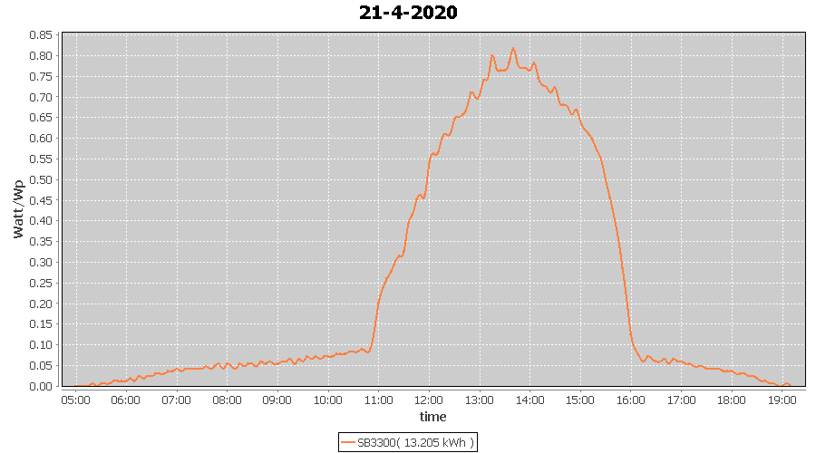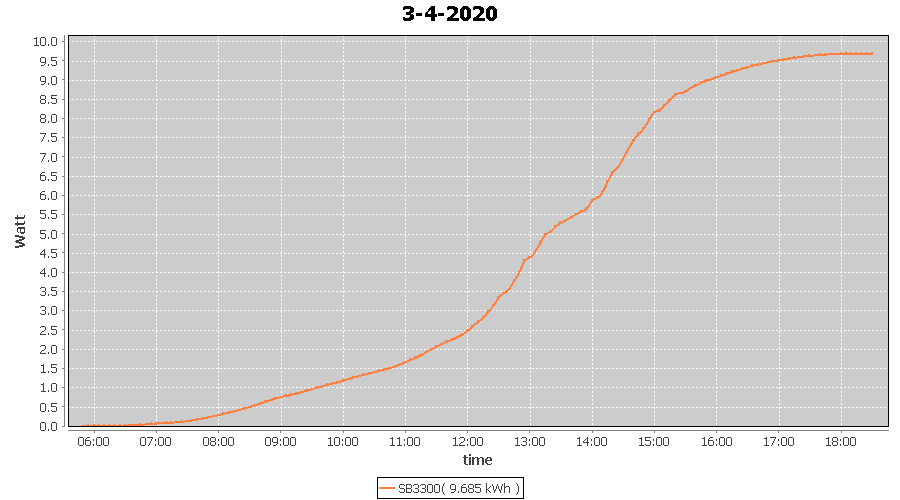 | 21-4-2020 | kWh | W/Wp | 13.205 | 3960 | 3.3 | 6.107 | £ 9.63 | 4.1 | |
