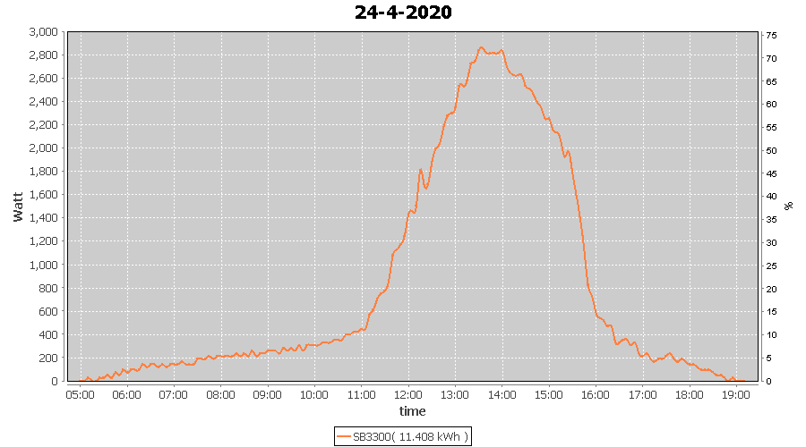 | 24-4-2020 | kWh | W/Wp | 11.408 | 3960 | 2.9 | 5.276 | £ 8.32 | 3.5 | |
