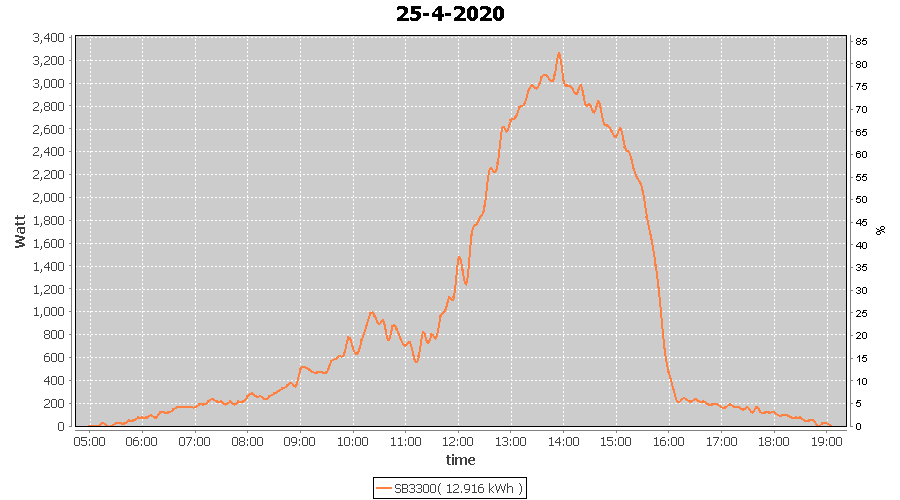 | 25-4-2020 | kWh | W/Wp | 12.916 | 3960 | 3.3 | 5.974 | £ 9.42 | 4.0 | |