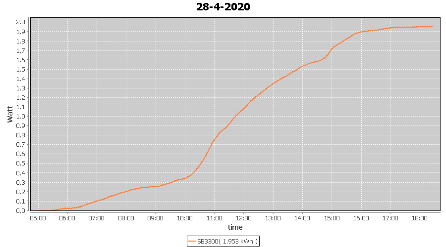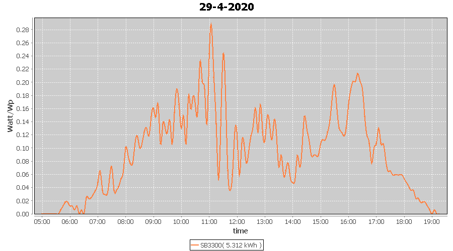 | 29-4-2020 | kWh | W/Wp | 5.312 | 3960 | 1.3 | 2.457 | £ 3.87 | 1.6 | |