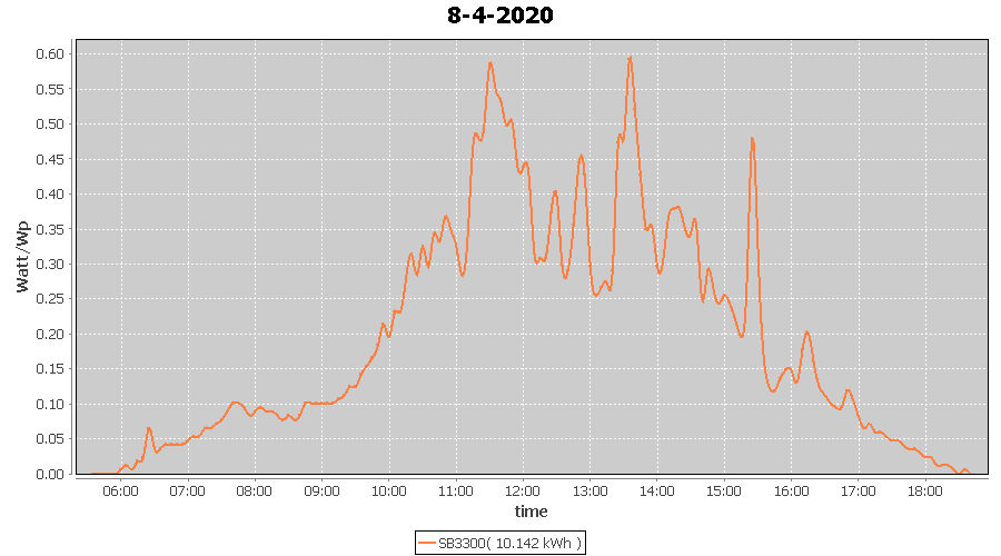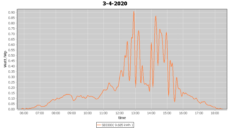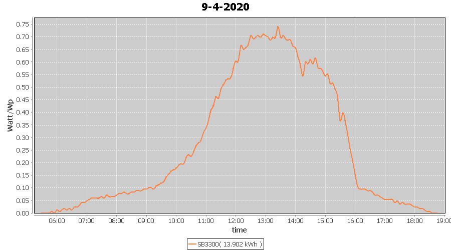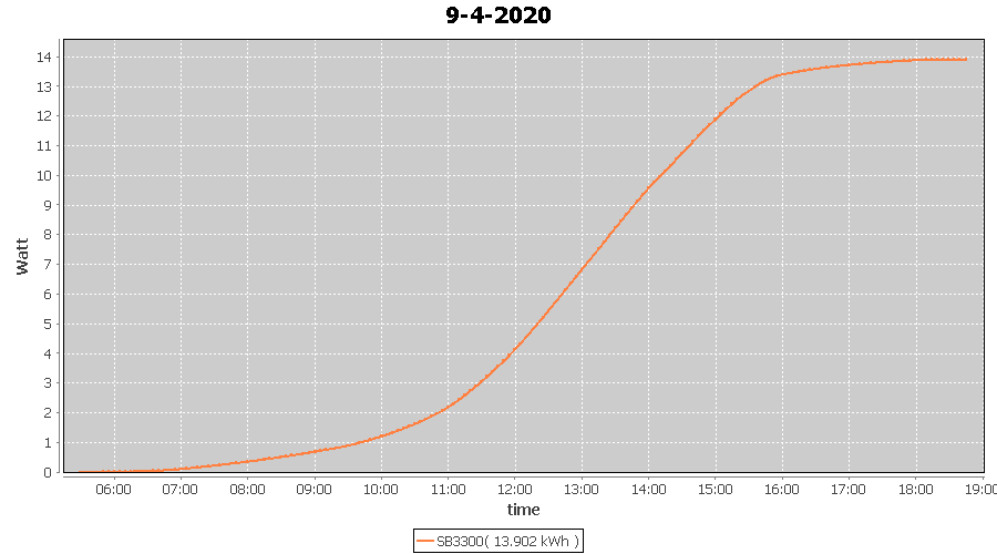 | 9-4-2020 | kWh | W/Wp | 13.902 | 3960 | 3.5 | 6.430 | £ 10.14 | 4.3 | |