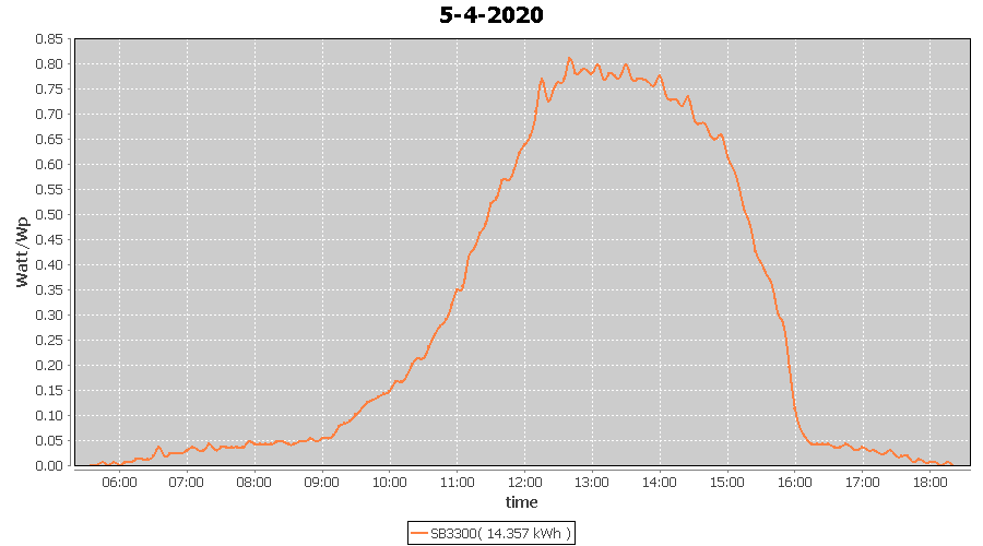 | 5-4-2020 | kWh | W/Wp | 14.357 | 3960 | 3.6 | 6.640 | £ 10.47 | 4.5 | |