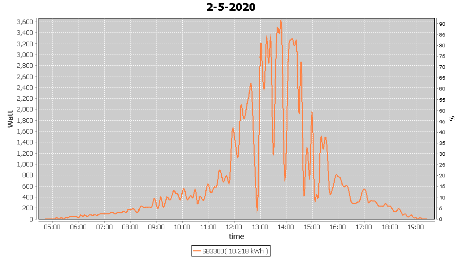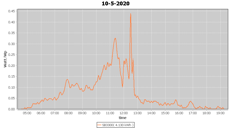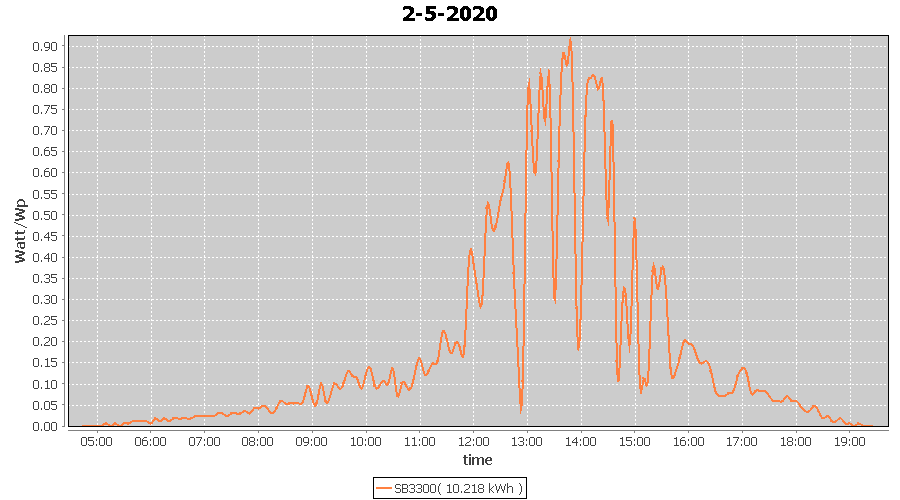 | 5-5-2020 | kWh | W/Wp | 13.134 | 3960 | 3.3 | 6.074 | £ 9.58 | 4.1 | |