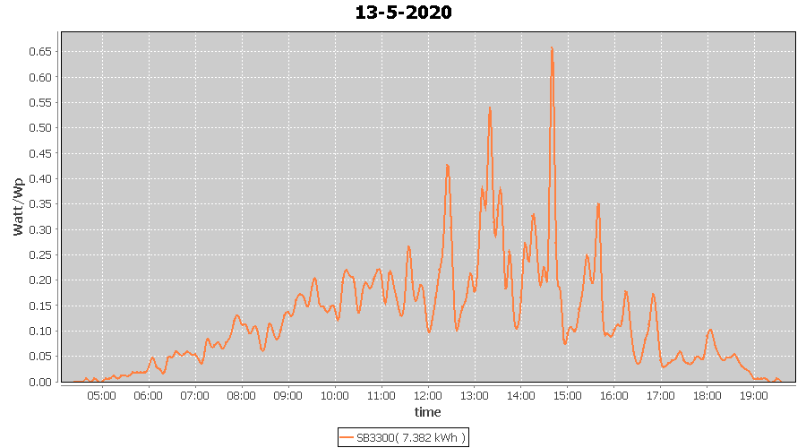 | 13-5-2020 | kWh | W/Wp | 7.382 | 3960 | 1.9 | 3.414 | £ 5.38 | 2.3 | |