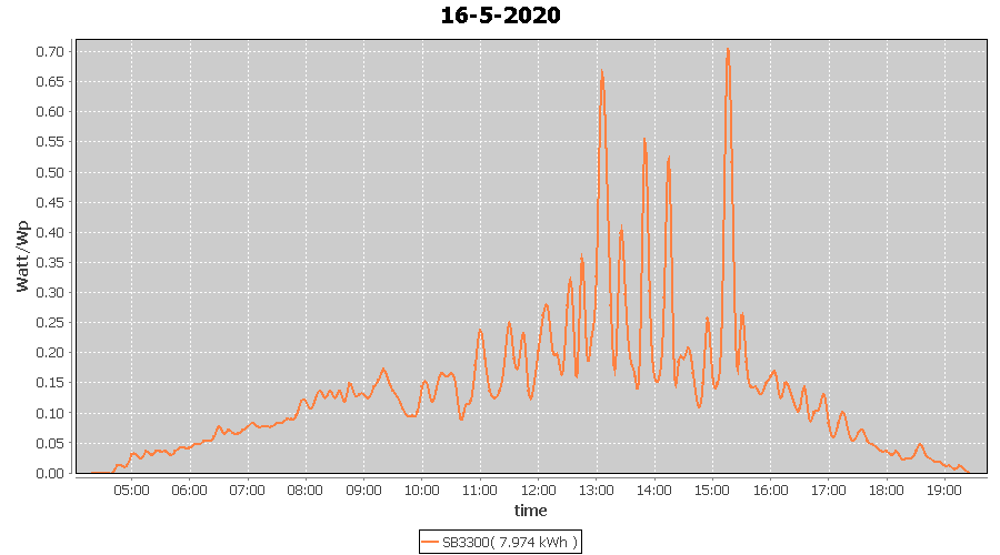 | 16-5-2020 | kWh | W/Wp | 7.974 | 3960 | 2.0 | 3.688 | £ 5.82 | 2.5 | |