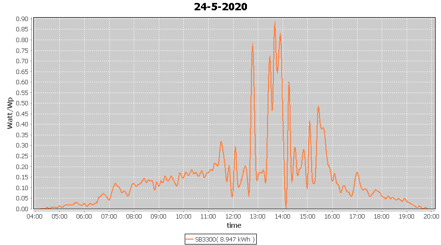 | 24-5-2020 | kWh | W/Wp | 8.947 | 3960 | 2.3 | 4.138 | £ 6.53 | 2.8 | |