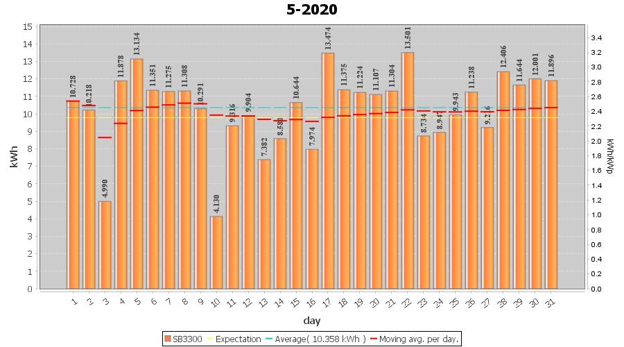 | 18-5-2020 | kWh | W/Wp | 11.375 | 3960 | 2.9 | 5.261 | £ 8.30 | 3.5 | |