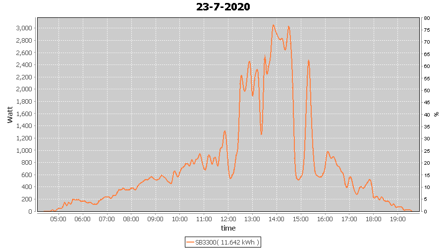 | 23-7-2020 | kWh | W/Wp | 11.642 | 3960 | 2.9 | 5.384 | £ 8.49 | 4.6 | |