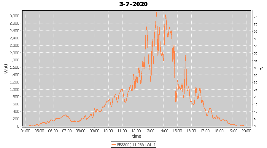 | 18-7-2020 | kWh | W/Wp | 13.382 | 3960 | 3.4 | 6.189 | £ 9.76 | 5.3 | |