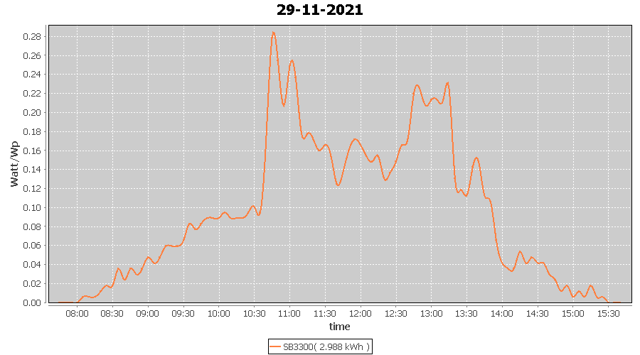 | 29-11-2021 | kWh | W/Wp | 2.988 | 3960 | 0.8 | 1.382 | £ 2.26 | 3.2 | |