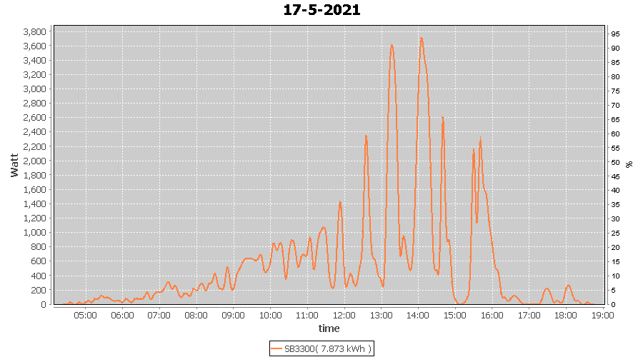 | 17-5-2021 | kWh | W/Wp | 7.873 | 3960 | 2.0 | 3.641 | £ 0.00 | 3.1 | |