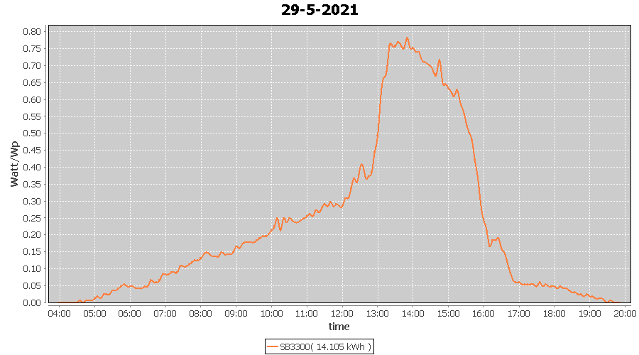 | 29-5-2021 | kWh | W/Wp | 14.105 | 3960 | 3.6 | 6.524 | £ 0.00 | 5.5 | |