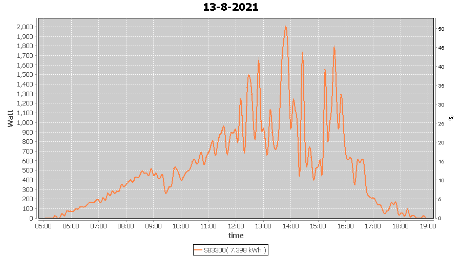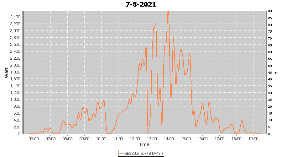 | 13-8-2021 | kWh | W/Wp | 7.398 | 3960 | 1.9 | 3.422 | £ 0.00 | 3.5 | |