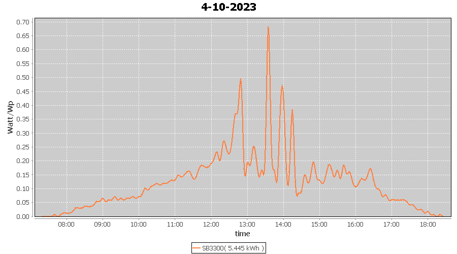 | 4-10-2023 | kWh | W/Wp | 5.445 | 3960 | 1.4 | 2.518 | £ 5.71 | 3.7 | |