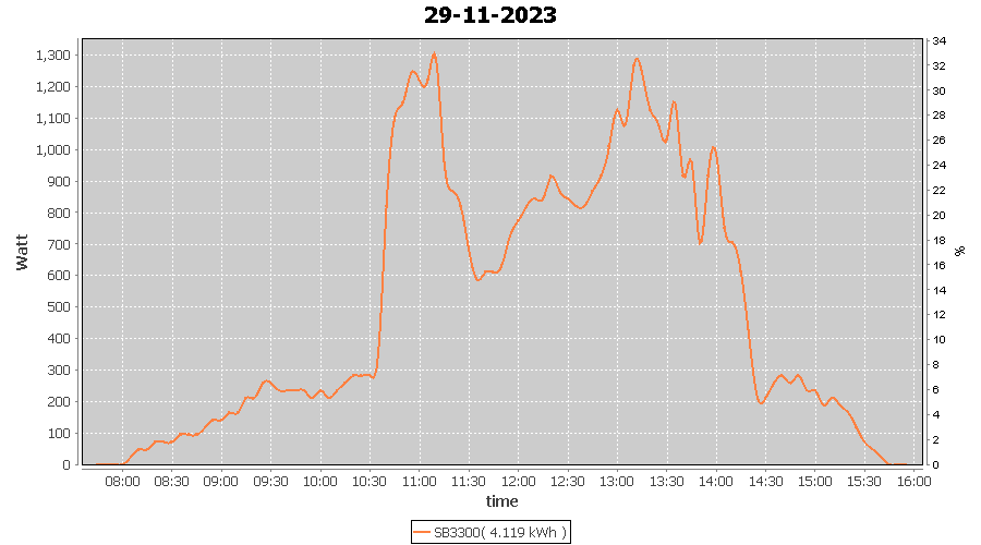 | 29-11-2023 | kWh | W/Wp | 4.119 | 3960 | 1.0 | 1.905 | £ 4.32 | 4.7 | |