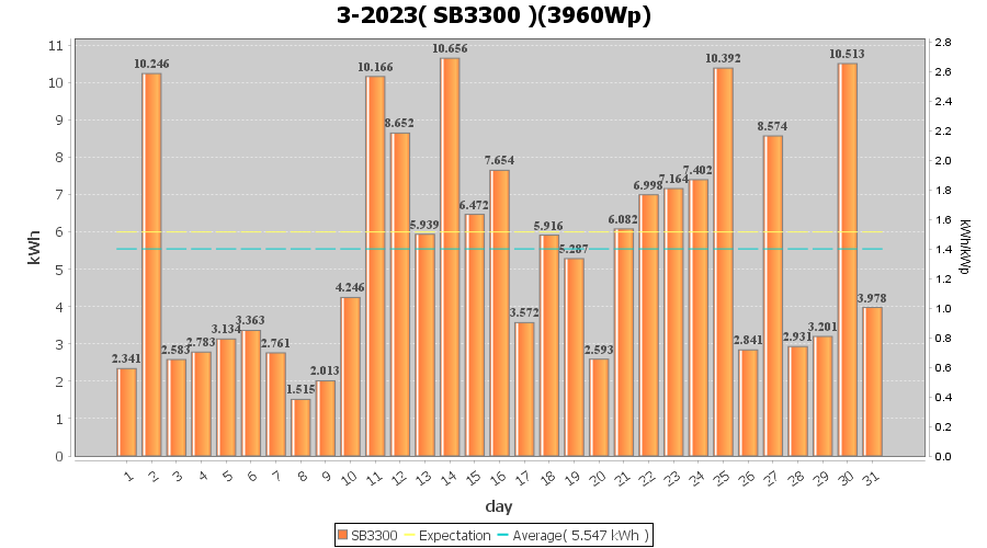 | 14-3-2023 | kWh | W/Wp | 10.656 | 3960 | 2.7 | 4.928 | £ 10.15 | 6.2 | |