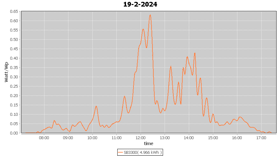 | 19-2-2024 | kWh | W/Wp | 4.966 | 3960 | 1.3 | 2.297 | £ 5.21 | 4.9 | |