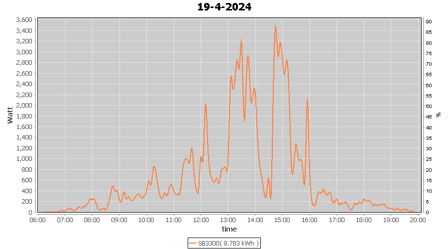 | 19-4-2024 | kWh | W/Wp | 8.783 | 3960 | 2.2 | 4.062 | £ 0.00 | 3.3 | |