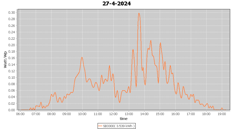 | 27-4-2024 | kWh | W/Wp | 3.539 | 3960 | 0.9 | 1.637 | £ 0.00 | 1.3 | |