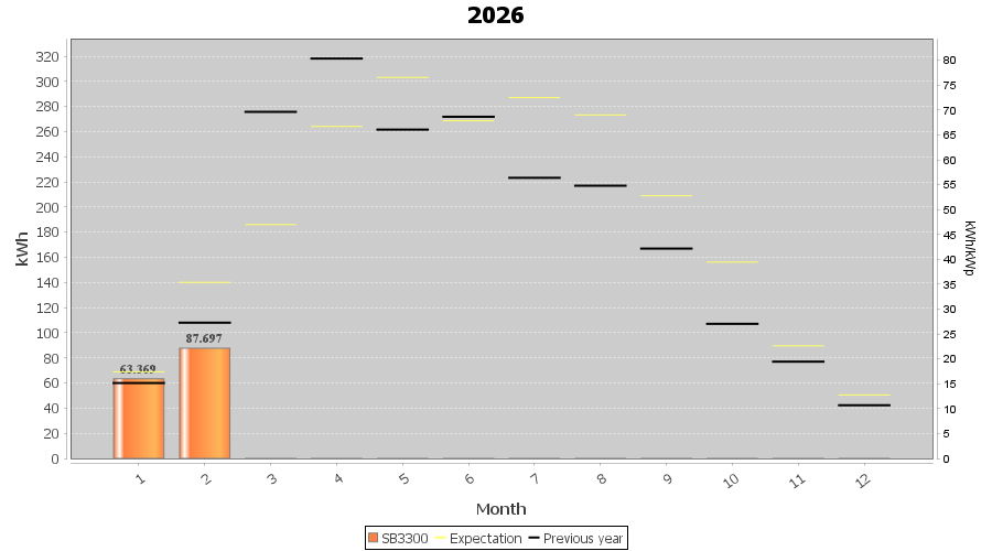| Inverter | Wp | Prognosis | kWh/kWp | realised | kWh/kWp | % |